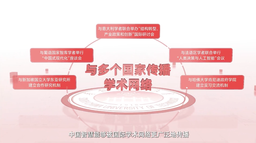 “华南理工大学依托国家高端智库——公共政策研究院(IPP)等平台,共商全球议题,谋划国际传播,讲好中国故事,致力于提升我国在全球教育治理当中的话语权和参与度。”