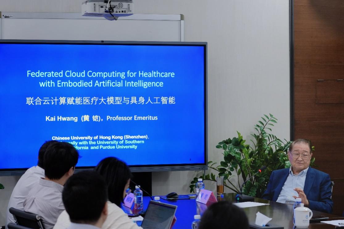 讲座中,黄铠教授围绕联合云计算、医疗大模型及具身人工智能等前沿议题展开系统讲解,并结合其团队在智能云医疗大数据领域的研究成果,分析了人工智能技术在医疗健康领域的应用前景与发展趋势。