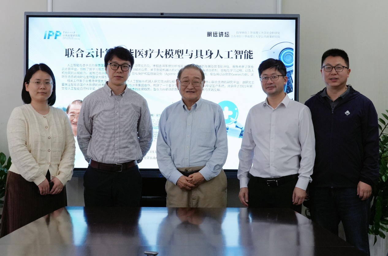 2026年3月31日上午,华南理工大学公共政策研究院(IPP)成功举办第25期“明远讲坛”。本期讲坛特邀美国南加州大学、香港中文大学(深圳)荣誉教授黄铠担任主讲嘉宾,作题为“联合云计算赋能医疗大模型与具身人工智能”的专题讲座。广州艾目易科技有限公司董事长、华南理工大学电子与信息学院副教授杨荣骞担任与谈人。